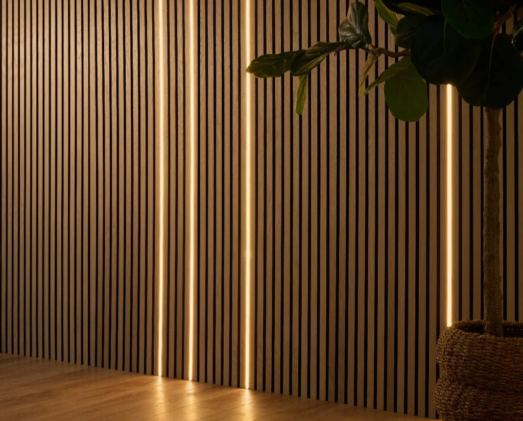 Their acoustic slat wood wall panels (especially the walnut or oak with wide slats) and fluted designs evoke that timeless retro-modern vibe, adding texture, depth, and subtle acoustic benefits without overwhelming a space.