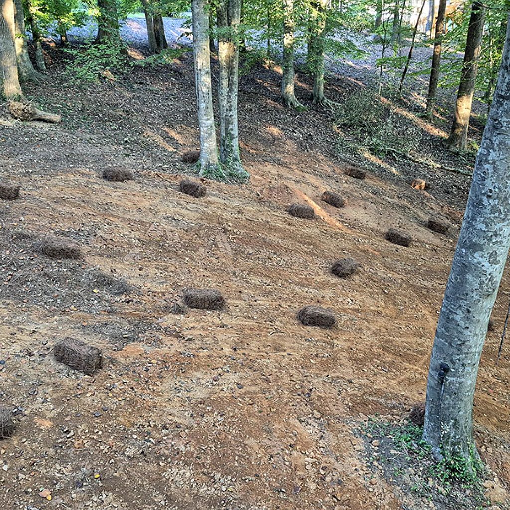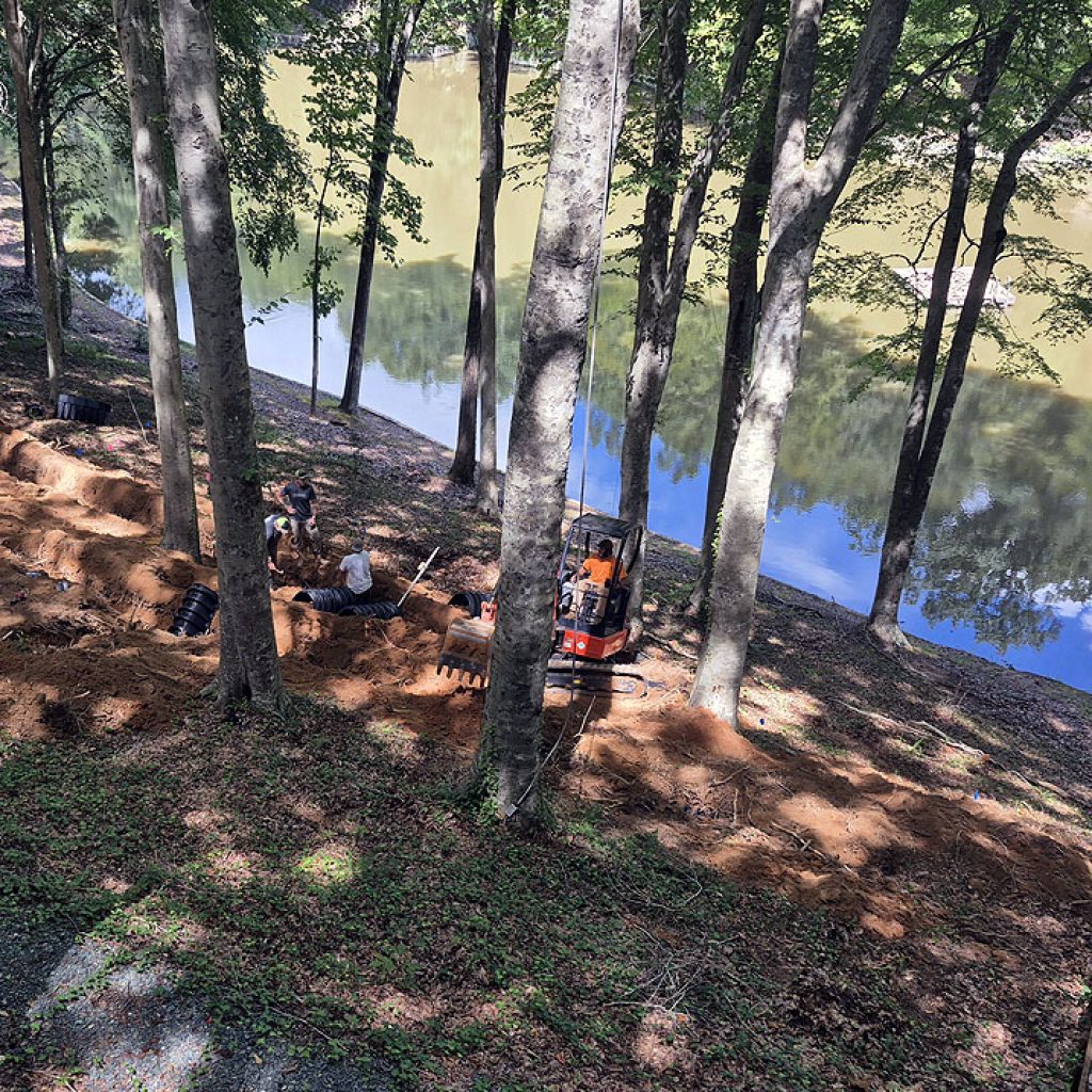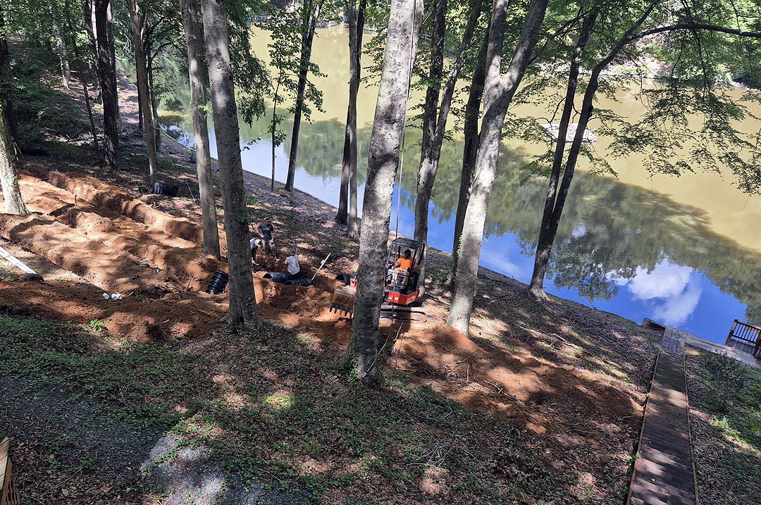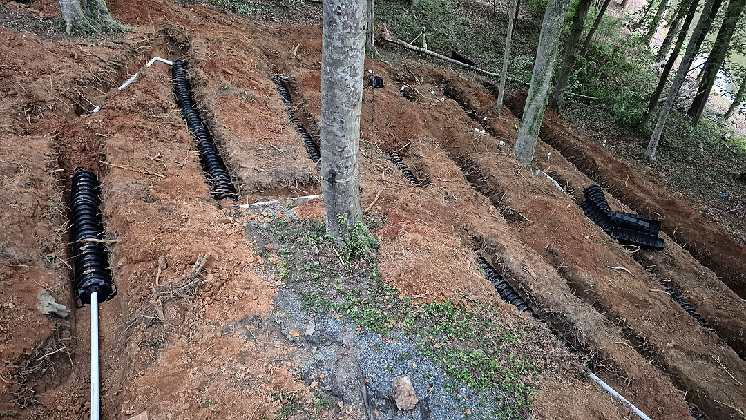 You may not be thinking about it, but your yard will be destroyed. If like us, you live on a wooded hill, you need to do something about water erosion. We had to get 250 bales of pine needles at $7 a bale. It was not easy to swallow, but you don’t want to have your new septic system exposed due to rain and water runoff.